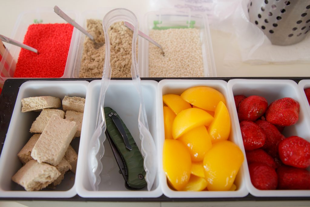 Покупатели могли выбрать мороженое трех вкусов: персиковое, клубничное или халвичное с посыпкой из халвы.